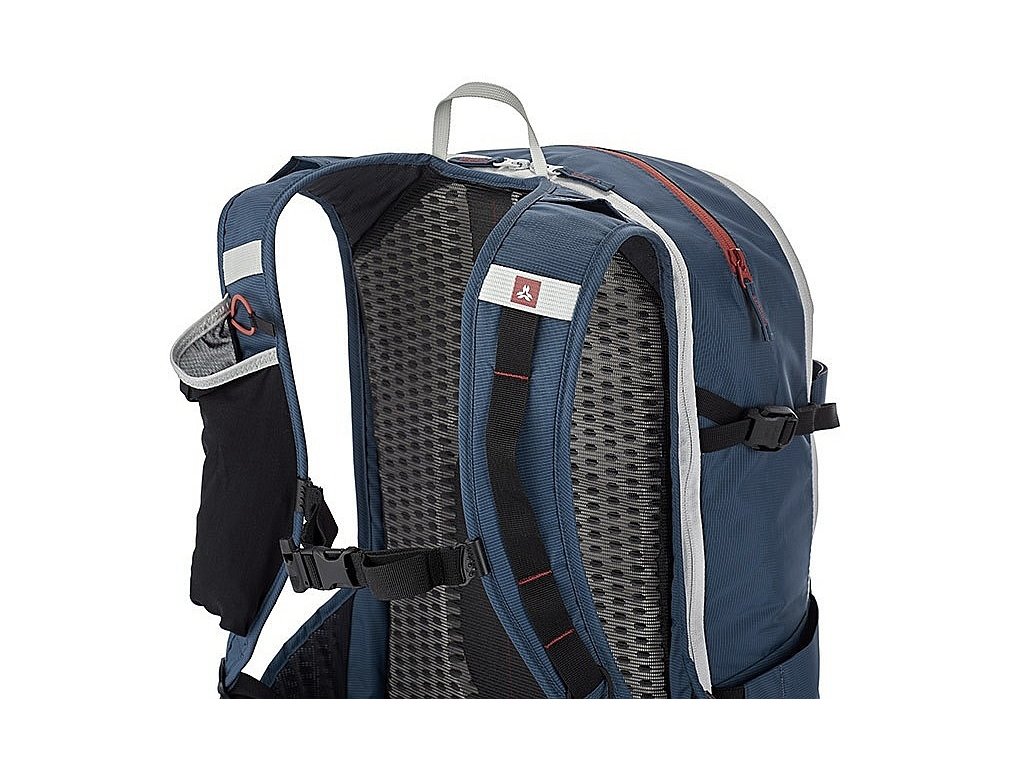 - ergonomicky tvarované ramenní popruhy s výškově nastavitelným hrudním pasem a záchrannou píšťalkou, vyztužený bederní pás s kapsičkou na zip, na ramenním popruhu síťovaná kapsa vhodná na láhev o objemu cca 500 ml